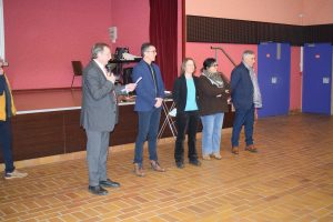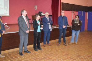 Pascal Lefort a commencé son discours en citant toutes les personnalités présentes pour mettre en avant leur implication dans leur soutien à la commune tout au long du mandat. Puis il a rapporté toutes les actions entreprises dans la commune au cours de l’année écoulée ainsi que l’avancement des projets avec notamment le démarrage des travaux prévus en janvier de la construction de la cantine scolaire rue du Stade. Il a précisé que cet investissement important, financé à 70 % par des subventions, n’endettera pas davantage la commune. Il termine son allocution en remerciant les élus et leurs conjoints, le personnel municipal et tous les partenaires, directrices et enseignantes des écoles, les associations et en présentant ses meilleurs vœux pour cette année qui devrait voir l’arrivée de nouveaux élus.