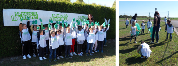 L’opération parrainée par les établissement Leclerc a eu lieu : le jeudi 22 septembre après-midi à l’école maternelle. 22 enfants encadrés par des parents d’élèves ont parcouru les terrains de sport et les parkings aux abords de la salle polyvalente. La quantité de déchets ramassés n’est pas négligeable. Un goûter offert par la commune a clôturé cette journée. Le lendemain, une opération de tri de ces déchets a eu lieu au sein de l’école afin de sensibiliser les enfants à l’importance du tri.
